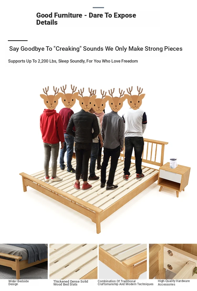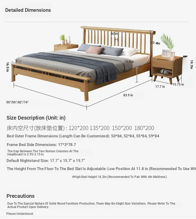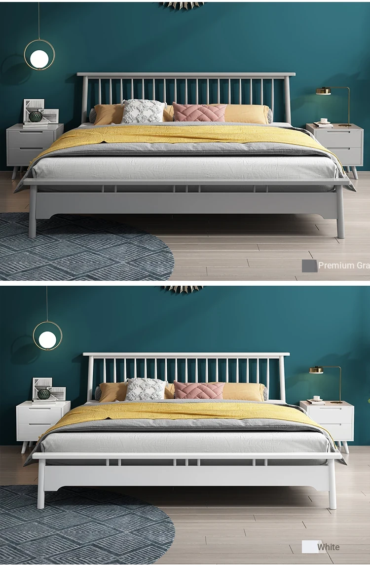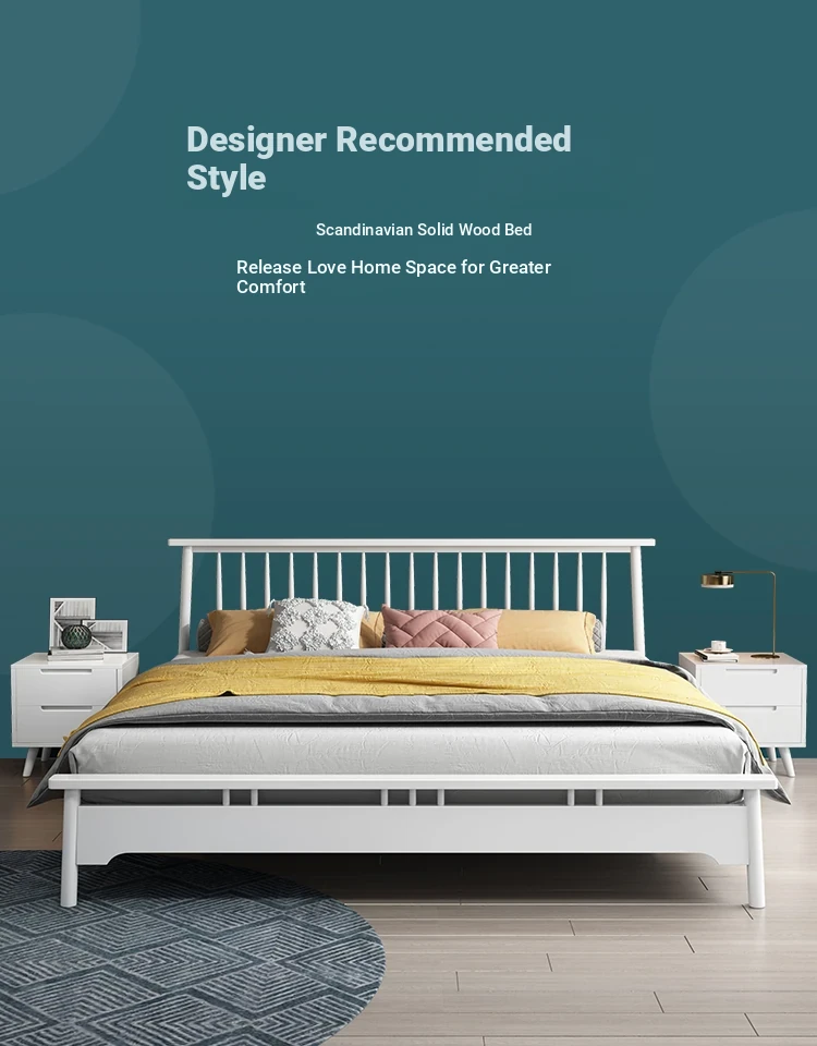 Nordic Minimalist Solid Wood Bed – Stylish Modern Design in Elegant White for Master Bedrooms (1.8m Double, 1.5m Single, 1.2m, 1.35m Japanese Style) – Elevate Your Sleep Experience!