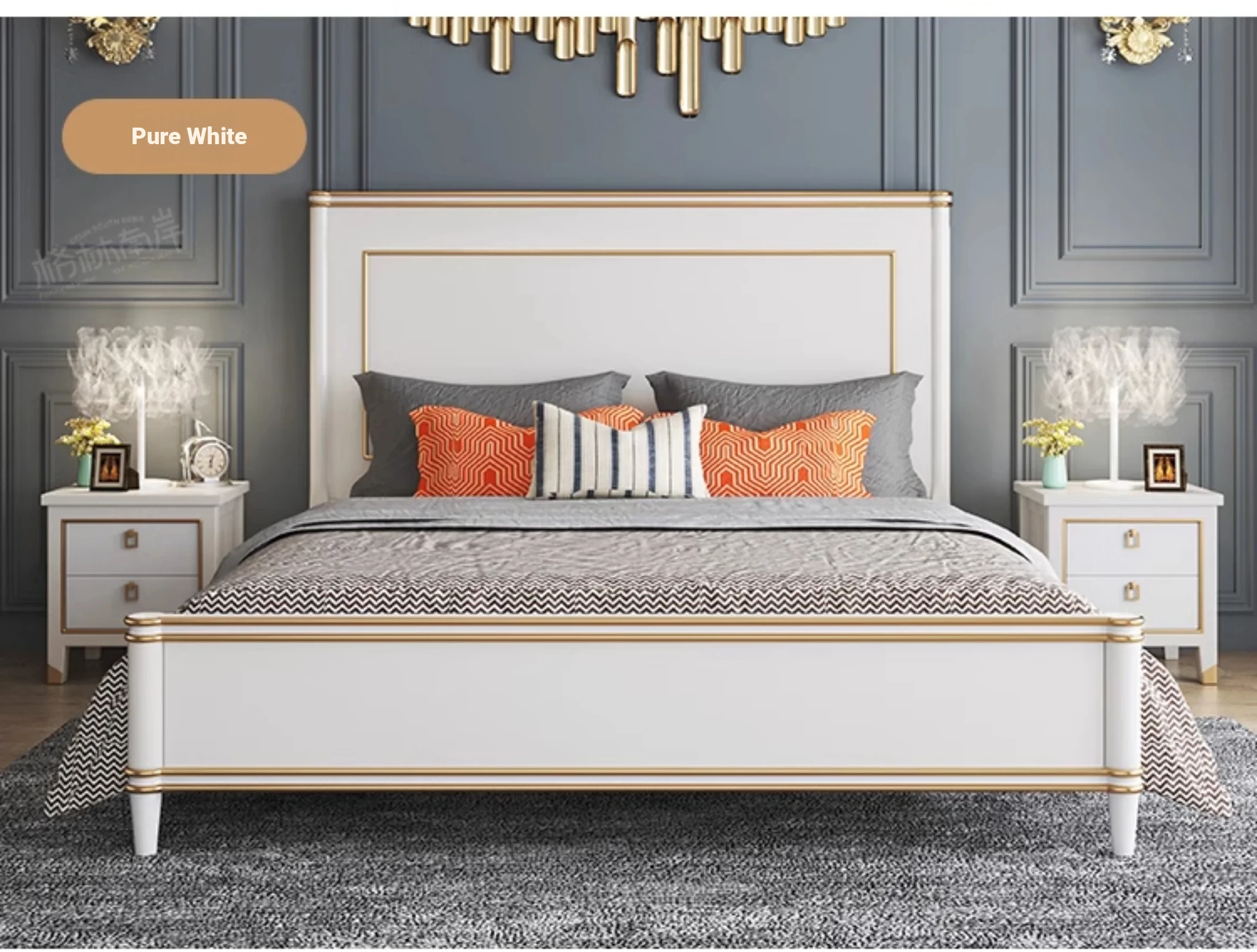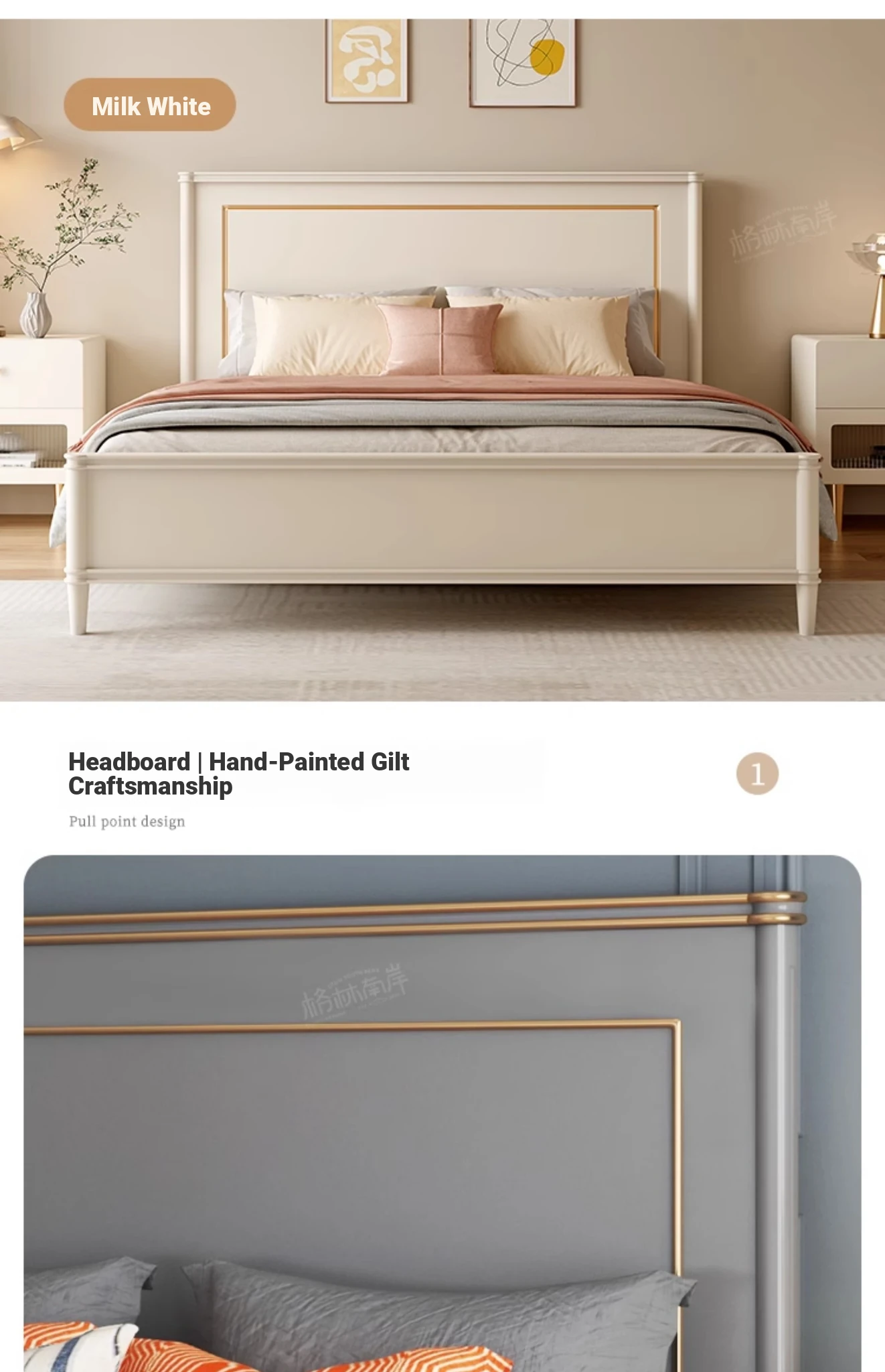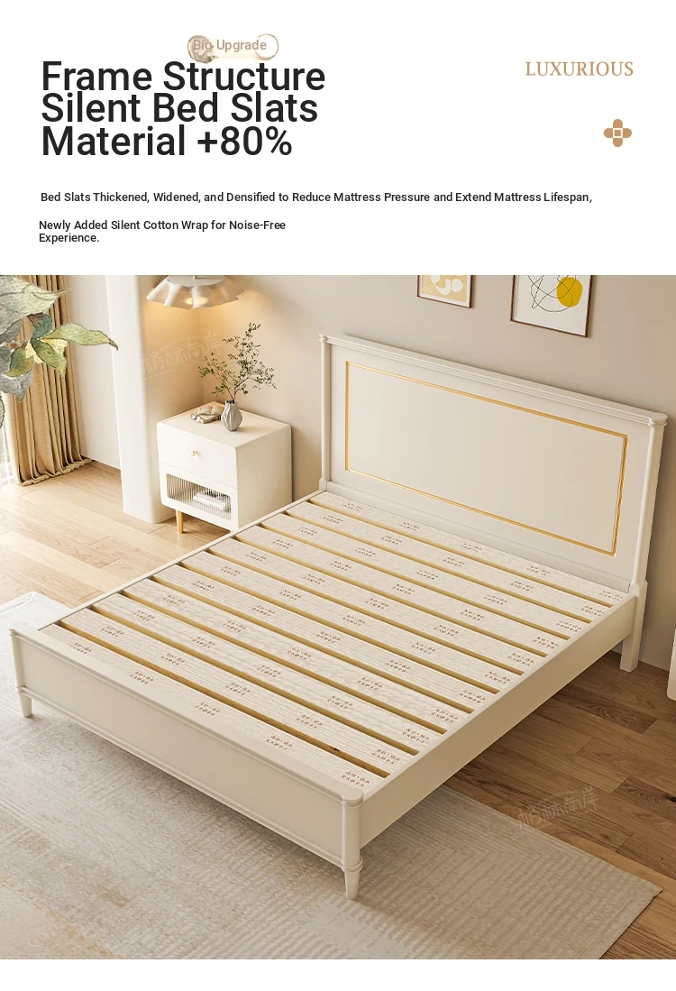 American Solid Wood Bed - French Vintage Light Luxury Double Bedroom Furniture for Home Use, 1.8m, High-End White & Gray Design for Elegant Master Suites