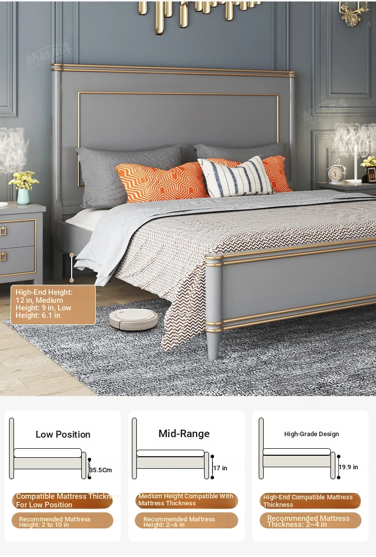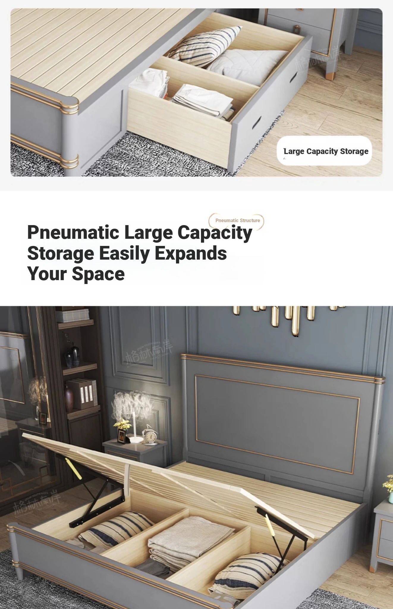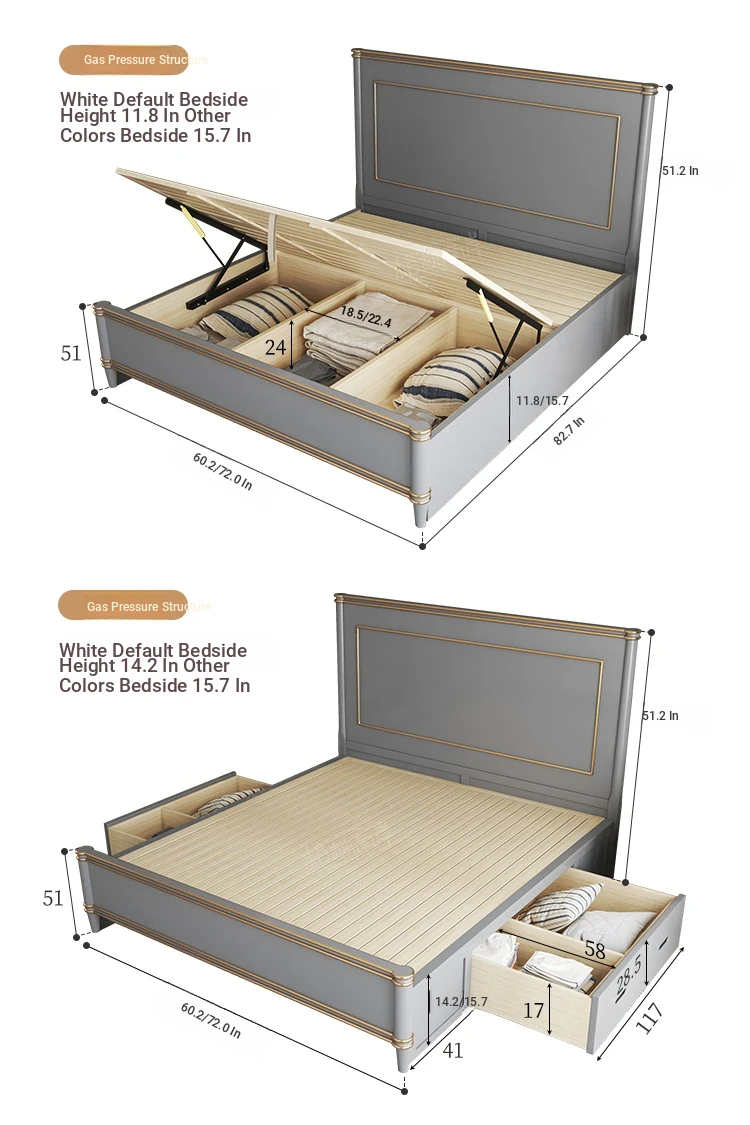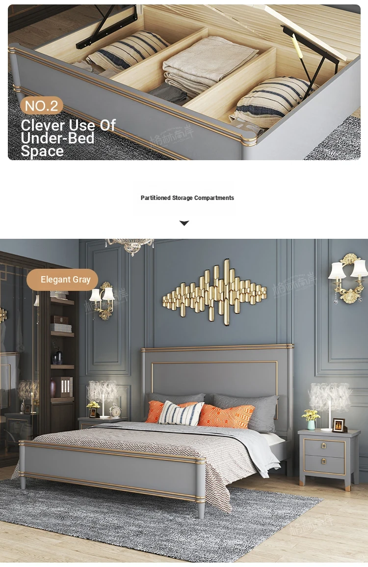 American Solid Wood Bed - French Vintage Light Luxury Double Bedroom Furniture for Home Use, 1.8m, High-End White & Gray Design for Elegant Master Suites