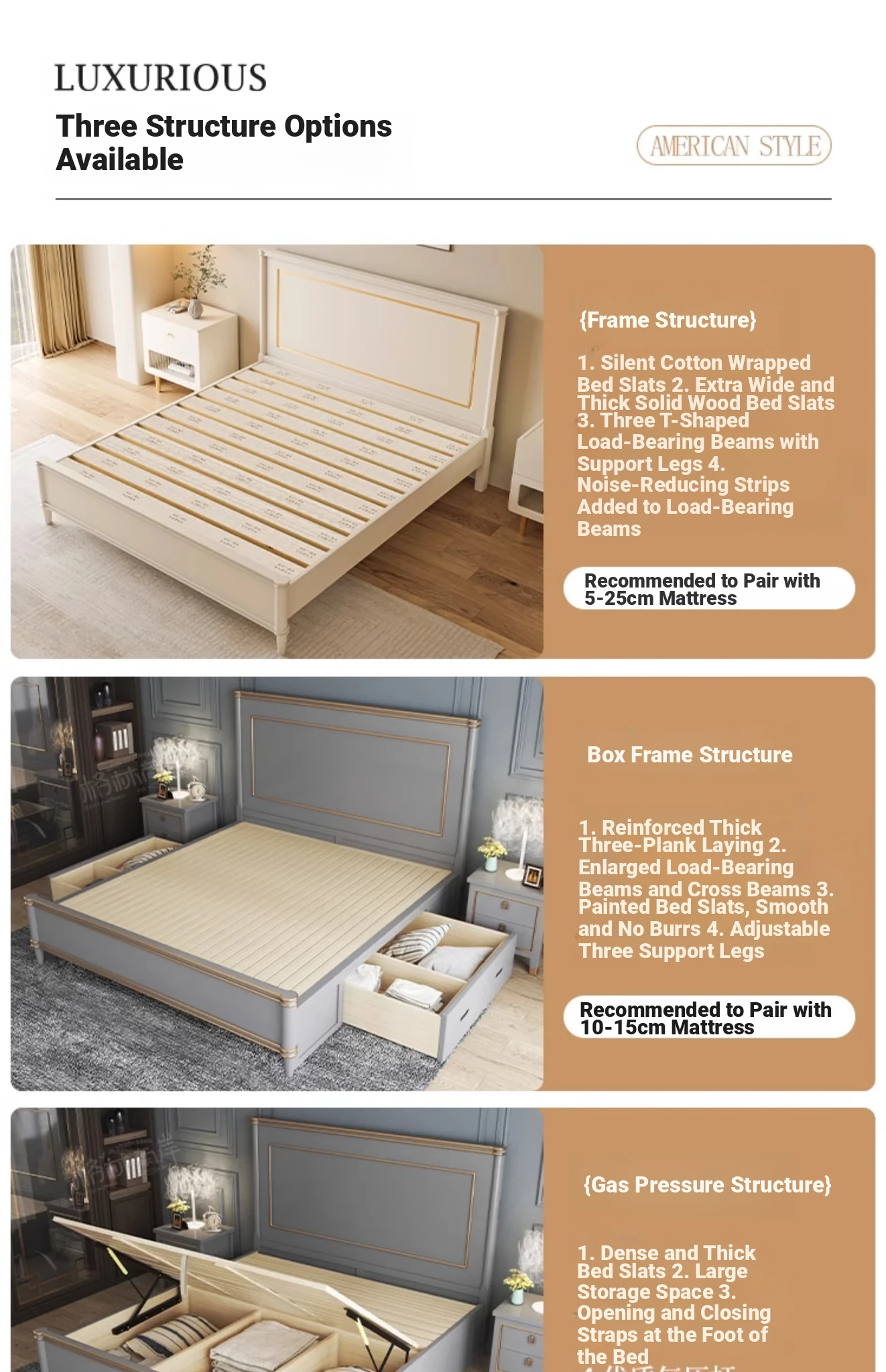 ⑧: [Classic Special Offer] American Luxury Sleeping Solid Wood Bed +⭐Seven-Star Independent spring bag mattress (soft Plaid, already discounted in 600 yuan)