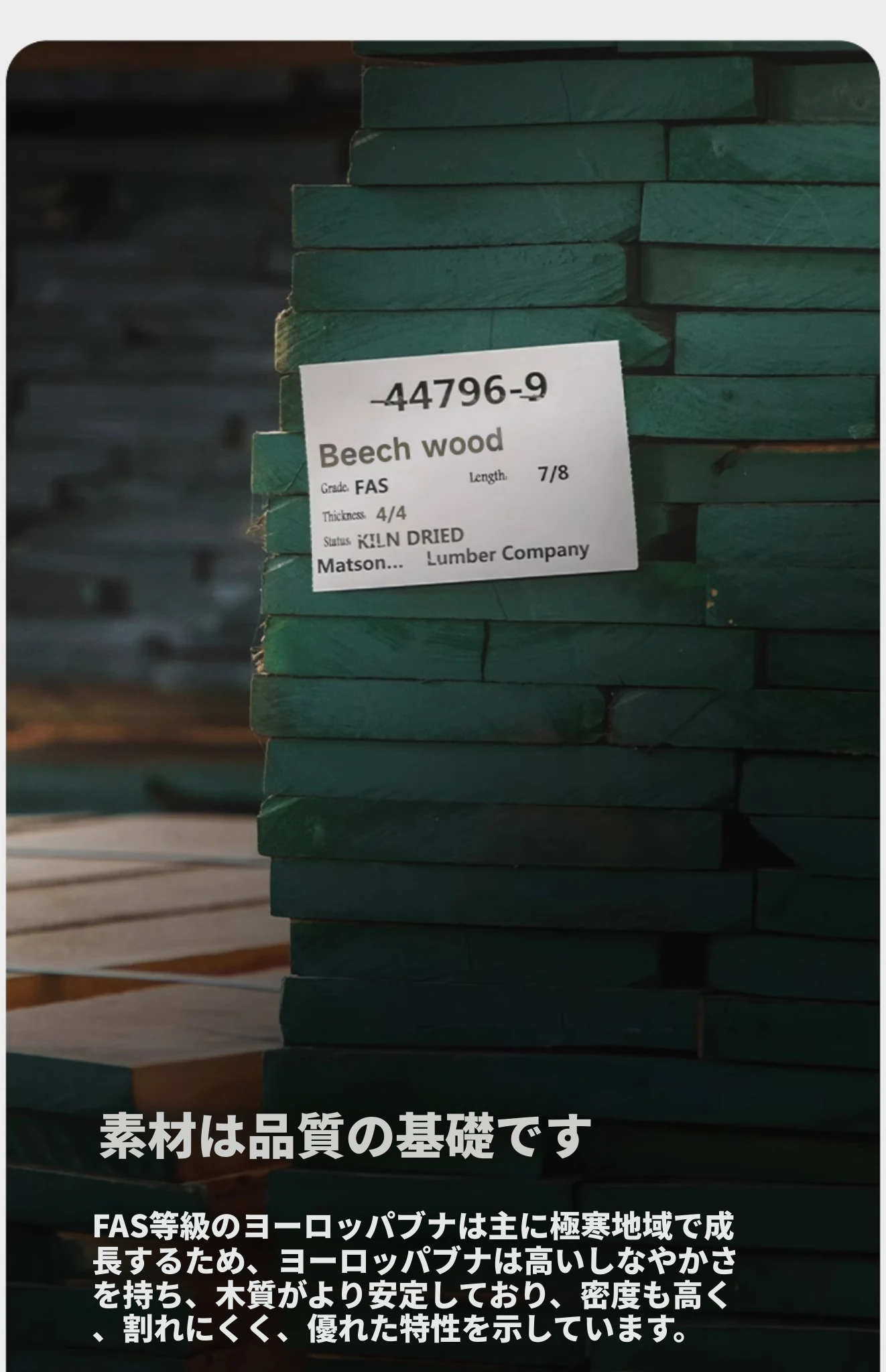 北米FASグレードのブナ材