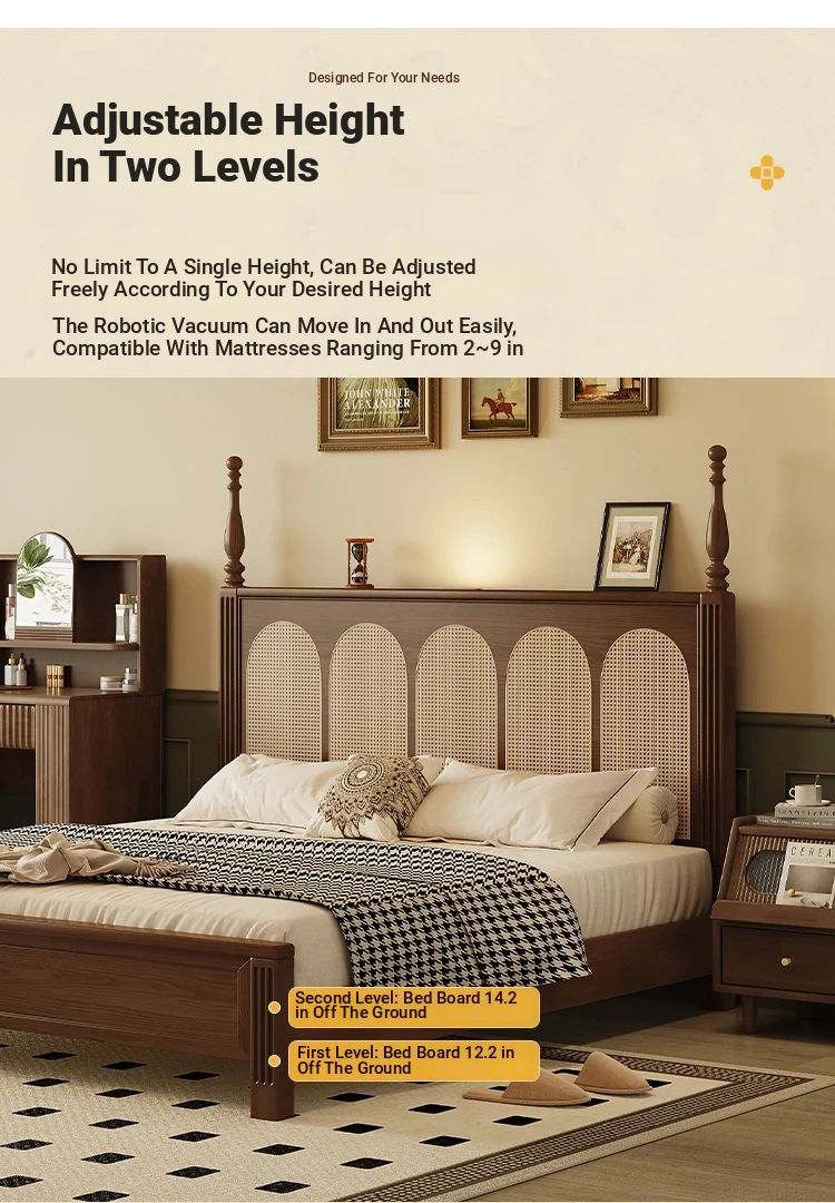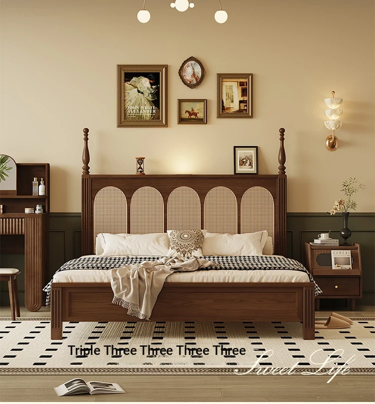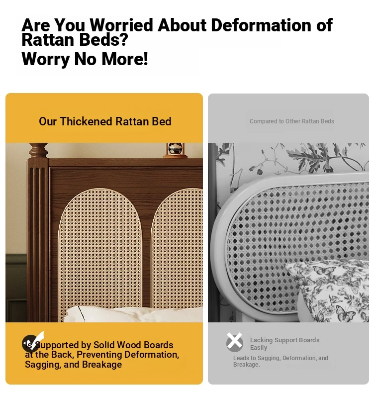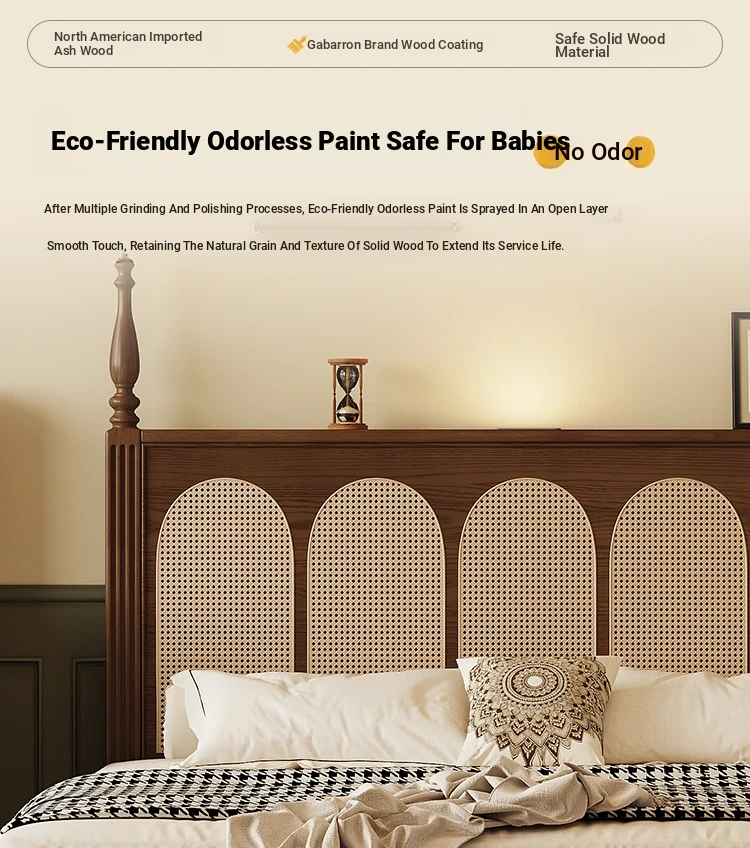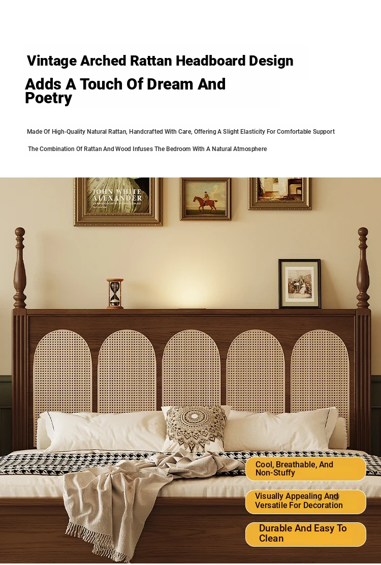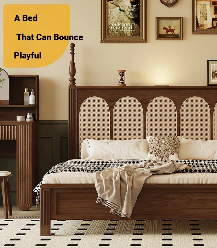 ③: [Pro upgrade-special sale Best Selling] rattan solid wood bed +❤Seven-Star Independent spring bag mattress (soft Plaid, already discounted in 600 yuan)