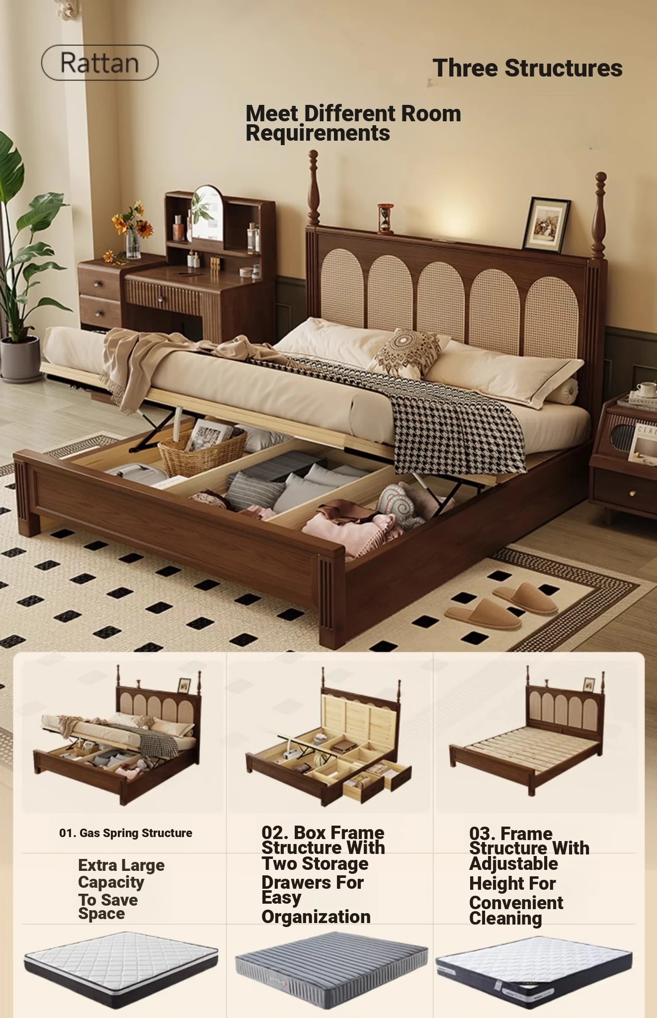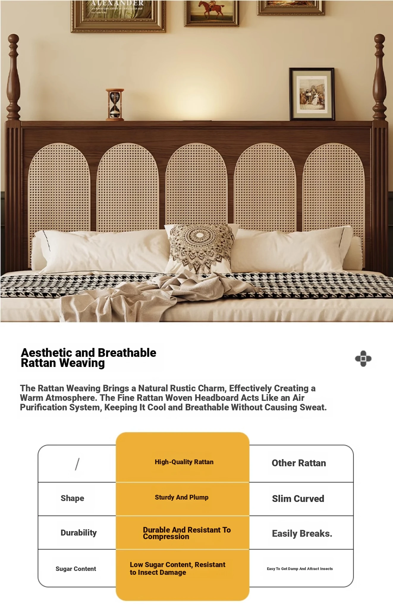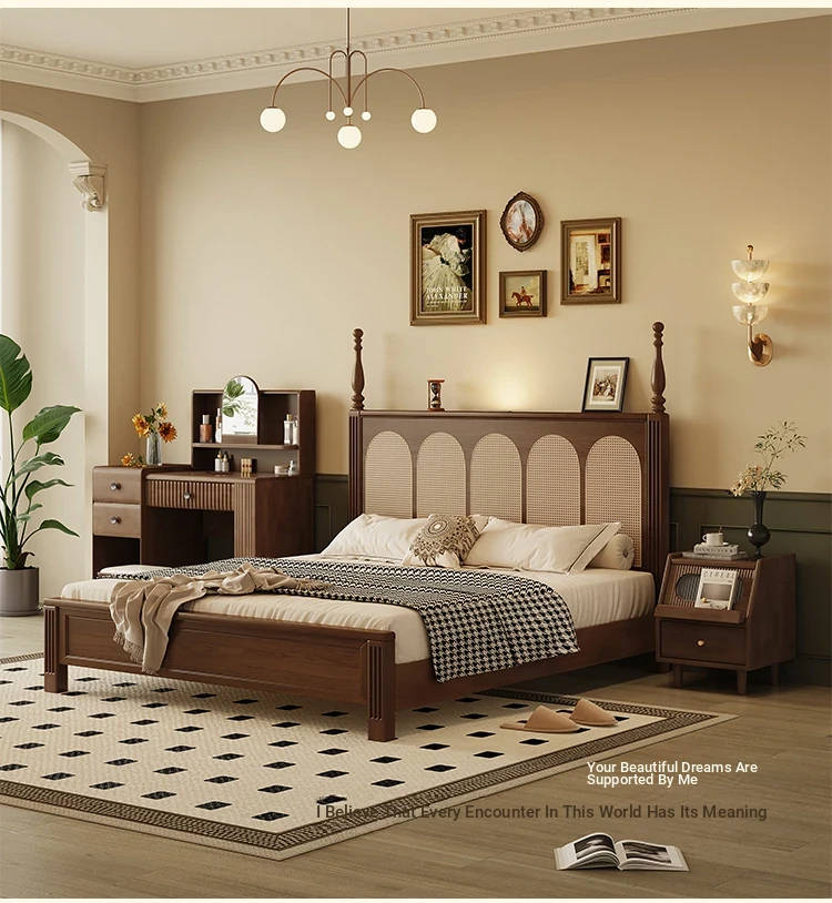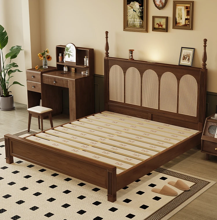 ③: [Pro upgrade-special sale Best Selling] rattan solid wood bed +❤Seven-Star Independent spring bag mattress (soft Plaid, already discounted in 600 yuan)
