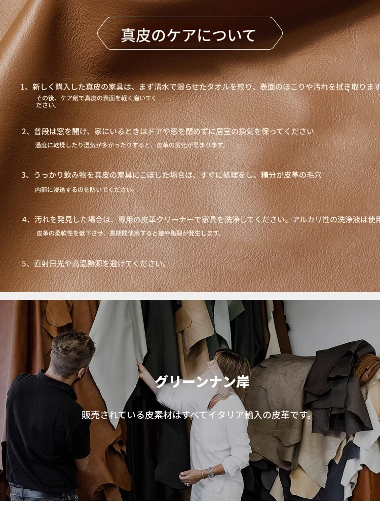 【グリーン南岸の無垢材家具館 高級ナパレザー素材の詳しい解説】全国保証で365日保価格!洗練されたデザインと耐久性を兼ね備えた家具で、心地よい暮らしを実現しましょう!