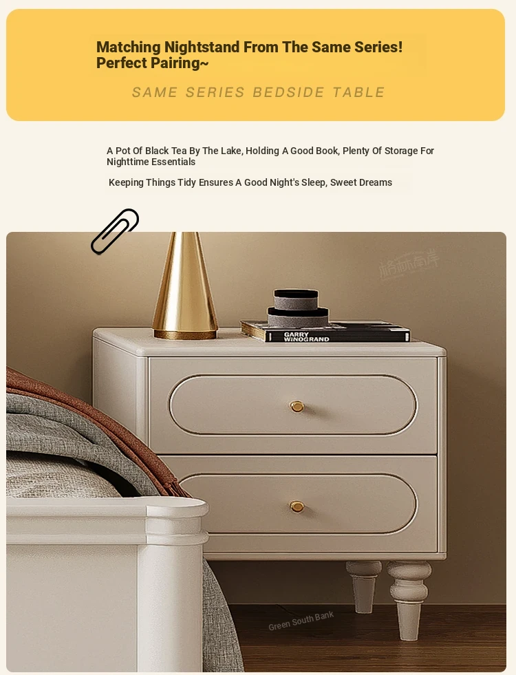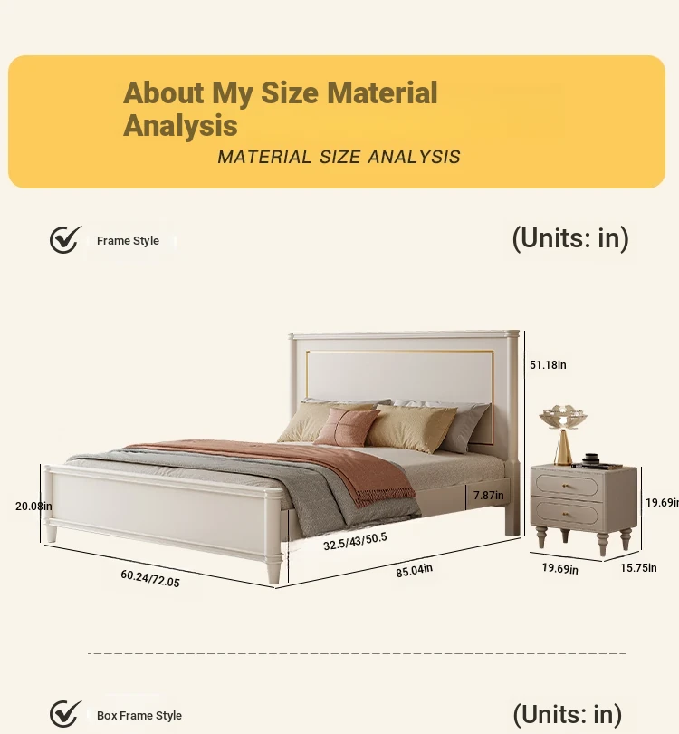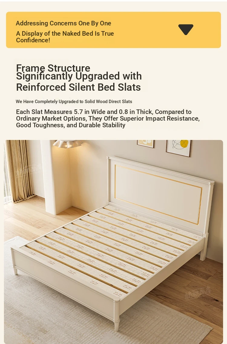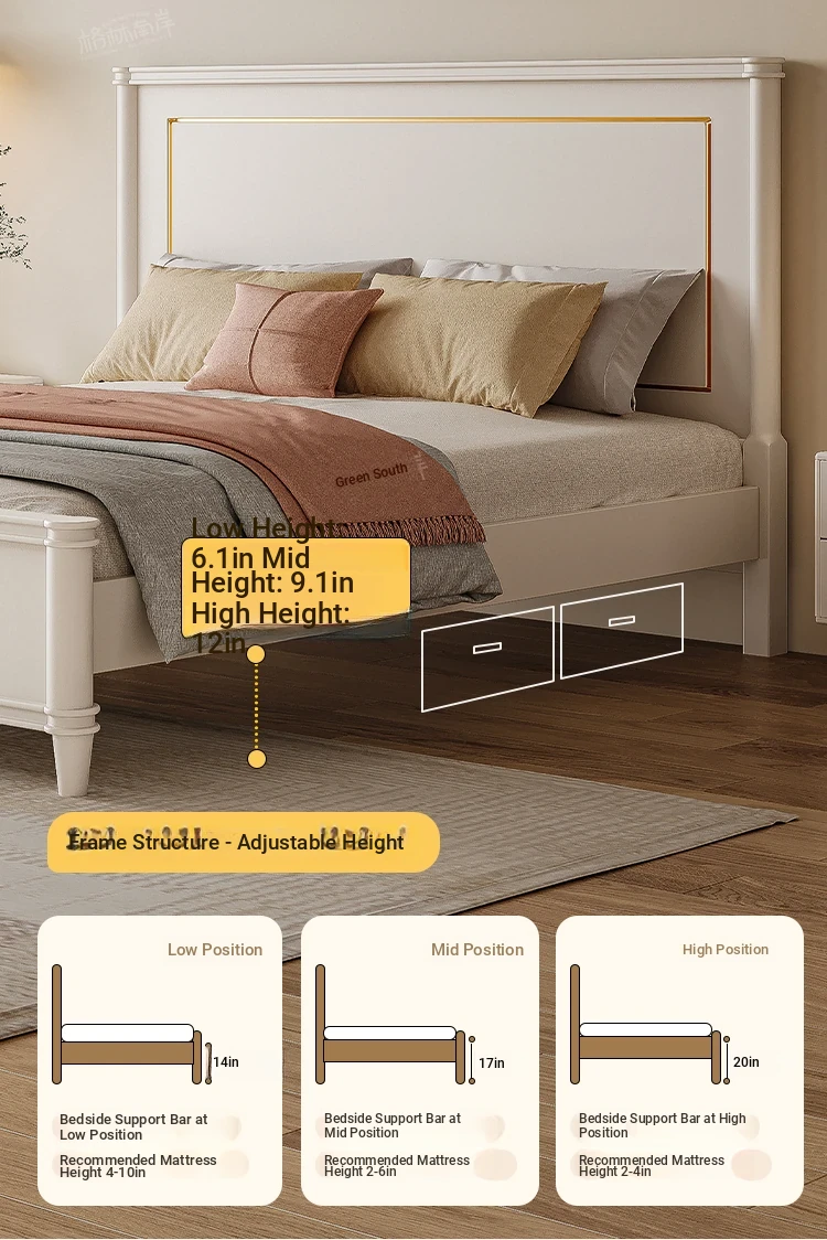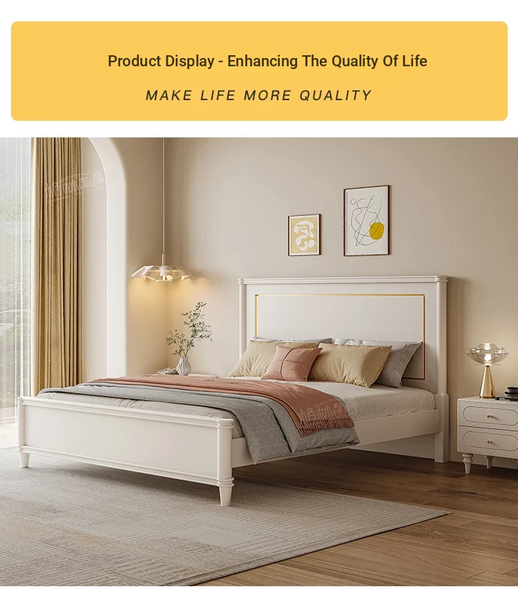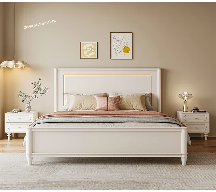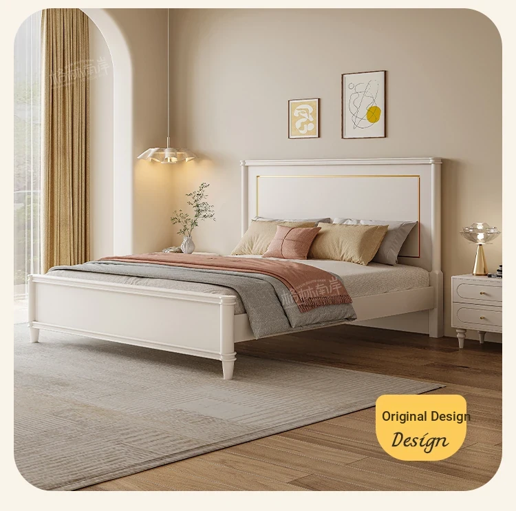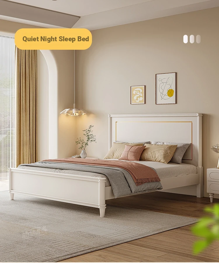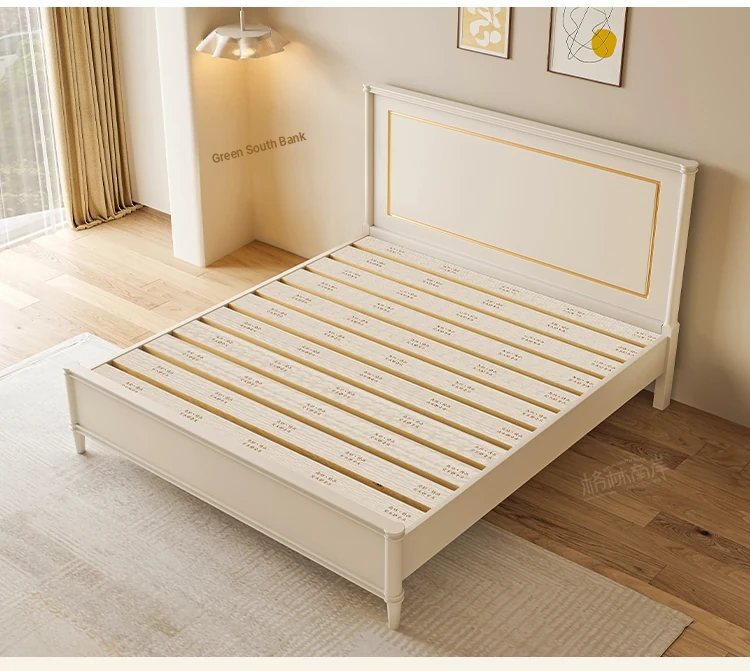 Luxury Solid Wood American-Style Bed | Elegant White French Cream Vintage Princess Double Bed for Master Bedroom - Perfect Blend of Comfort and Chic Design